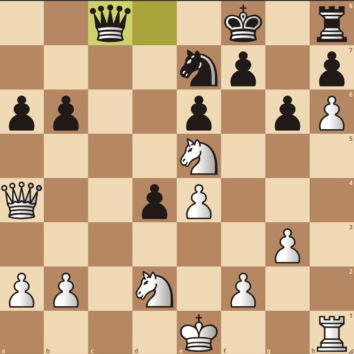 CW: “Hier heb ik wat gemakzuchtig gehandeld en niet de moeite genomen om uit te rekenen dat 21. Dxd4 Dc1+ niet werkt voor zwart.” [SvdB: na Ke2 en vervolgens Tc1 gaat het mat omdat zwart de controle over c7 en c8 verliest, al dan niet met dameverlies, aldus Stockfish.]